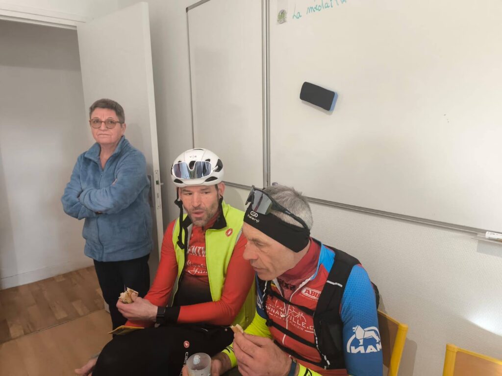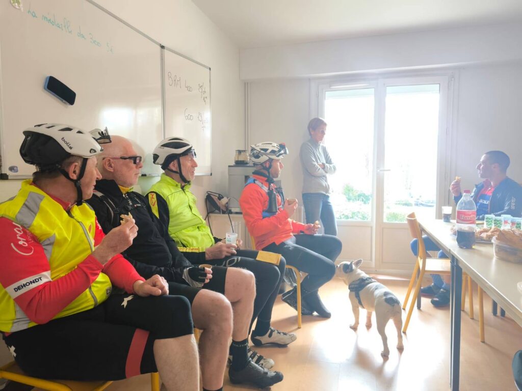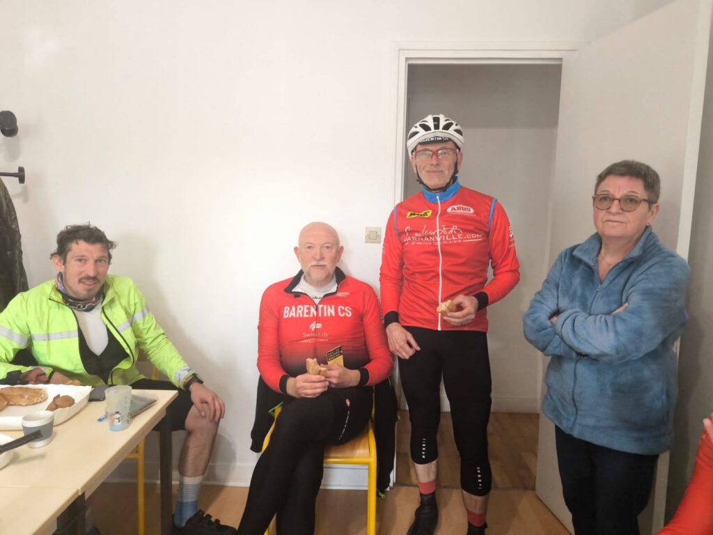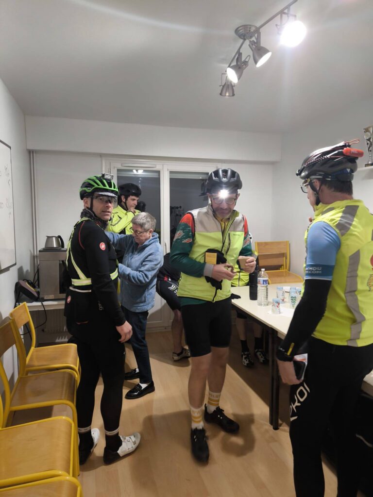 Il fallait se lever tôt, très tôt, ce samedi 11 avril pour accueillir les 36 participants au Brevet des Randonneurs Mondiaux. Nos bénévoles n’ont pas failli. Dès 2h30, les tables étaient garnies et le café chaud lorsque les premiers candidats poussaient la porte de nos locaux. A 3h30, ils enfourchaient leur vélo pour un périple de 300 km autour de la « boutonnière », enclave géographique, particulièrement accidentée, entre la Seine-Maritime et la Picardie. Premier pointage à Gamaches après 80 km. Le jour n’est toujours pas levé que le vent se fait déjà sentir. Virage à droite pour poursuivre vers le Sud-Est en direction de Conty pour le deuxième pointage. A droite à nouveau, direction Sud-Ouest pour un pointage à Gisors. Il reste une petite centaine de kilomètres mais les organismes sont déjà à rude épreuve. Le vent a forci avec cette désagréable impression qu’il est toujours de face. Peut-être Eole a-t-il fait le parcours en sens inverse ? Repartir, direction Nord-Ouest. Vascœuil, St-Georges-sur-Fontaine, Montville, et enfin Pavilly où les tables sont à nouveau dressées avec sandwichs, crêpes, gâteaux maison et boissons. Remercions, encore une fois, nos bénévoles pour leur engagement au service du Club. Comme l’écrit Etienne, cyclo infatigable : « Tous les cyclistes que j’ai rencontrés sont dithyrambiques sur l’organisation, la qualité des parcours et l’accueil à l’AC Pavilly ». Qu’on se le dise pour le 25 avril, date du prochain Brevet. Là, il faudra rajouter 100 km pour le BRM 400, organisé par l’Amicale.